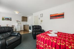 This air-conditioned studio room features a double and single bed with electric blankets, ensuite shower and hairdryer. All rooms offer kitchenette facilities with cutlery, crockery, pots, microwave, refrigerator, electric jug, toaster and complimentary tea/coffee with fresh milk. Relax ad enjoy the cosy sitting area, with a smart TV and Unlimited WiFi.