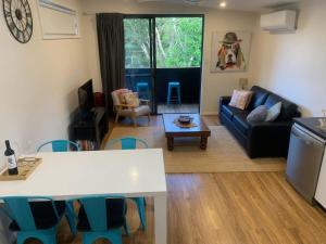W domu wakacyjnym z 1 sypialnią zapewniono salon z telewizorem z płaskim ekranem, kuchnię z pełnym wyposażeniem, w tym lodówką i zmywarką, a także łazienkę (1) z bezpłatnym zestawem kosmetyków. W domu wakacyjnym Architecturally Designed Nature Lovers Delight dla Gości przygotowano ręczniki i pościel.