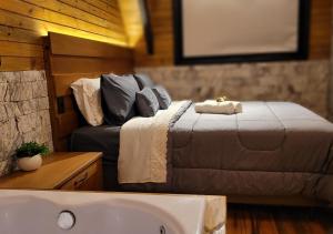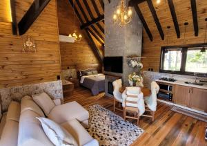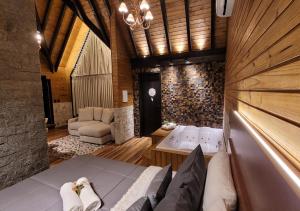 This chalet's standout features are the hot tub and fireplace. Boasting a private entrance, this air-conditioned chalet includes 1 living room, 1 separate bedroom and 2 bathrooms with a bath and a shower. Guests will find a stovetop, a refrigerator, kitchenware and an oven in the kitchen. The chalet also features a barbecue. The spacious chalet offers a tea and coffee maker, a seating area, a dining area, a flat-screen TV with streaming services, as well as lake views. V této ubytovací jednotce se nachází 3 postele.