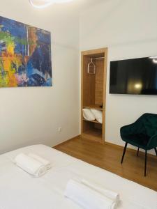 Boasting a private entrance, this air-conditioned apartment comes with 1 living room, 1 separate bedroom and 1 bathroom with a shower and a hairdryer. Guests can make meals in the kitchenette that features a stovetop, a refrigerator, kitchenware and a tea and coffee maker. This apartment has a washing machine, soundproof walls, a flat-screen TV with streaming services and a terrace. The unit has 2 beds.