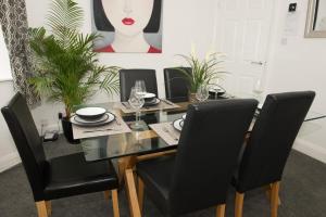 This holiday home has a fully fitted kitchen, a separate dining room and a living room with patio doors to the garden.