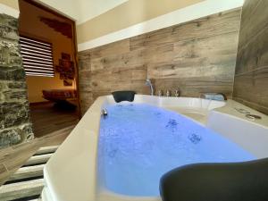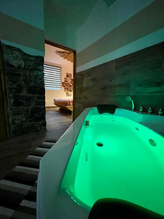 This holiday home's special features are the hot tub and the sauna. Featuring a private entrance, this air-conditioned holiday home comprises 1 living room, 1 separate bedroom and 1 bathroom with a bath and a shower. Guests can make meals in the kitchen that is equipped with a stovetop, a refrigerator, kitchenware and a microwave. The unit features a minibar, garden views, a terrace and wine/champagne is provided for guests. The unit offers 1 bed.