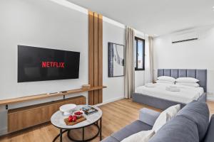Guests can make meals in the kitchen that is fitted with a stovetop, a refrigerator, kitchenware and an oven. This air-conditioned studio is comprised of a flat-screen TV with streaming services, a private bathroom as well as a balcony with sea views. The unit has 1 bed.