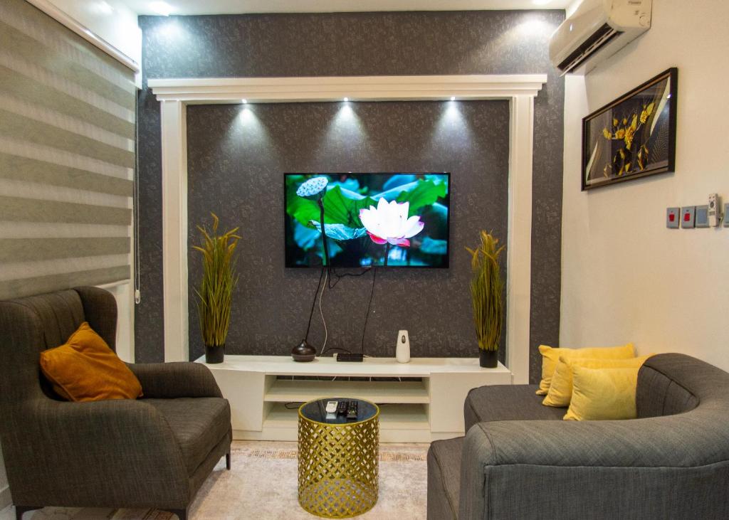 The air-conditioned apartment features 2 bedrooms, 2 bathrooms, a kitchen and a dining area. In the well-equipped kitchen, guests will find a refrigerator, kitchenware, a microwave and an electric kettle. This apartment offers a washing machine and a flat-screen TV. The unit offers 2 beds.