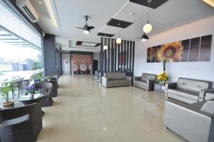 A modern single room offering tile flooring, air conditioning and a window. A flat-screen TV and an attached bathroom are included.