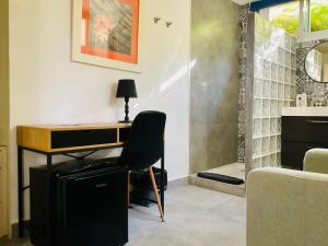 This air-conditioned double room has a bed on the upper floor and a lounge on the lower floor. It features large windows with partial sea views. The private bathroom includes a hydromassage shower. There is also an electric kettle and a small fridge.