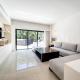 The apartment features 2 bedrooms, 2 bathrooms, bed linen, towels, a TV, a dining area, a fully equipped kitchen, and a balcony with garden views. The accommodation is non-smoking.