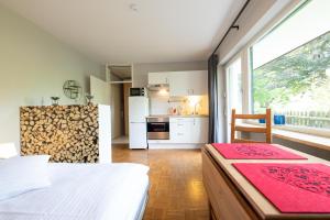 The well-fitted kitchen features a stovetop, a refrigerator, a microwave and a toaster. The apartment offers a washing machine, a coffee machine, a terrace with garden views as well as a private bathroom featuring a shower. The unit offers 1 bed.