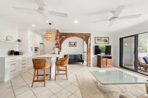 Featuring a balcony, the apartment includes a seating area with a flat-screen TV and sofa. The kitchen is equipped with a stove and oven. The bathroom comes with a shower.