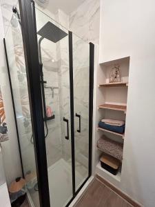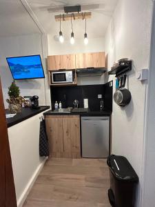 The studio offers a wardrobe, a sofa, as well as a private bathroom featuring a shower and a hairdryer. In the kitchenette, guests will find a stovetop, a refrigerator, kitchenware and a microwave. The studio provides a tea and coffee maker, a seating area, a dining area, a flat-screen TV with streaming services, as well as city views. V této ubytovací jednotce je k dispozici 1 postel.