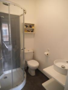 Ein voll ausgestattetes eigenes Badezimmer mit einer Dusche und einem Haartrockner ist vorhanden.