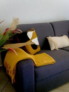 L'unità climatizzata di Au Nid de KLOE, plage & piscine include 1 camera da letto, soggiorno, bagno con doccia e set di cortesia, e angolo cottura con frigo e macchina da caffè. Presso Au Nid de KLOE, plage & piscine la dotazione include lenzuola e asciugamani.