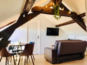В апартаментах AU PETIT BONHEUR имеются 1 спальня, гостиная, полностью оборудованная кухня с холодильником и кофемашиной, а также 1 ванная комната с ванной и бесплатными туалетно-косметическими принадлежностями. Полотенца и постельное белье включены в стоимость проживания в AU PETIT BONHEUR.