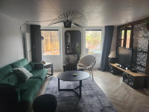 La casa en el alojamiento ofrece vistas al jardín y terraza, y cuenta con 2 dormitorios, sala de estar, TV de pantalla plana, baño con ducha y cocina equipada con nevera y lavavajillas. La casa o chalet Au petit randonneur proporciona toallas y ropa de cama.