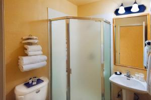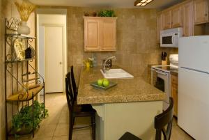 A seating area with a flat-screen cable TV is offered in this room. A small fridge is provided.