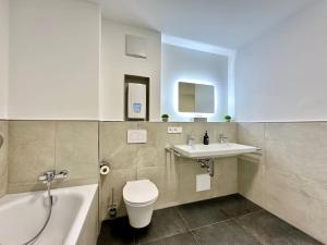 Apartmán ubytování poskytuje 2 ložnice, 2 koupelny, ložní prádlo, ručníky, kabelovou TV s plochou obrazovkou, jídelní kout a plně vybavenou kuchyň. Z balkonu ubytování ubytování se nabízí výhled na město. Koupelna v Auszeit Apartment LAKEVIEW disponuje sprchou, pračkou, fénem a toaletními potřebami zdarma.