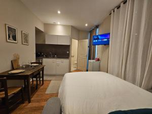 Apartmán Aux'Cerfs - Studio coeur de ville zahrnuje 1 ložnici, TV s plochou obrazovkou a kuchyň.