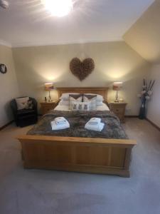 This double en suite room has a king-size oak bed with matching oak furniture. It also has Harris Tweed accessories.