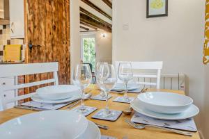 This holiday home features a fireplace. The holiday home has 2 bedrooms, 1 bathroom and a kitchen. The holiday home's kitchen, which features kitchenware, is available for cooking and storing food. The holiday home features a washing machine, heating and garden views. The unit has 3 beds.