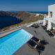 Номера отеля прекрасно обставлены и оформлены в белых тонах. Из номеров открывается вид на море, кальдеру, потрясающие закаты, деревню Ия и остров Терасия. Во всех номерах есть спутниковое телевидение, ЖК-телевизор, DVD / CD-плеер, фен, сейф и проводной доступ в Интернет.