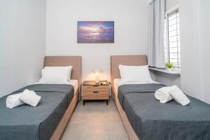 El apartamento el alojamiento tiene aire acondicionado, 2 dormitorios, sala de estar, cocina con nevera y cafetera, y 1 baño con ducha y artículos de aseo gratuitos. El apartamento Avra Sea Walls dispone de toallas y ropa de cama.