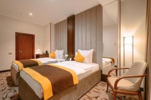 Azimut Hotel Tashkent è un alloggio dotato di un bar e ubicato a Tashkent. Completo di un ristorante, l’alloggio dispone anche di una terrazza, oltre a una piscina coperta e una sauna. L'alloggio propone una reception 24 ore su 24, transfer aeroportuali, il servizo in camera e il WiFi gratuito in tutta la struttura.