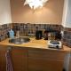 L'angolo cottura presenta frigorifero, forno e microonde, più macchina da caffè e bollitore elettrico.