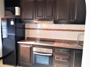 L'appartement climatisé du Baan suan lalana comprend une chambre, une télévision à écran plat et une cuisine avec réfrigérateur et four.