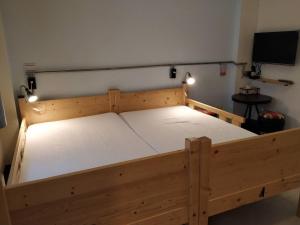 This bed in dormitory features a washing machine, seating area and tumble dryer.