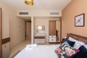 The spacious apartment features 2 bedrooms and 3 bathrooms with a bath and free toiletries. The well-equipped kitchen has a stovetop, a refrigerator, kitchenware and an oven. The apartment offers air conditioning, a washing machine, a coffee machine, a dining area, as well as a TV with cable channels. V této ubytovací jednotce je k dispozici 3 postele.