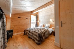 Decorated in wood, this apartment has a balcony, kitchen and kitchenware.