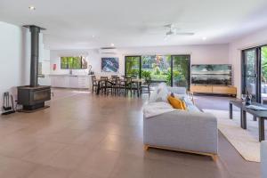 This holiday home's standout feature is the fireplace. This spacious holiday home is comprised of 4 bedrooms, kitchen and 3 bathrooms with a bath. Guests will find a stovetop, a refrigerator, a dishwasher and kitchenware in the fully equipped kitchen. The holiday home also has a barbecue. This air-conditioned holiday home consists of a dining area, a TV with streaming services a washing machine and an outdoor dining area. The unit offers 5 beds.