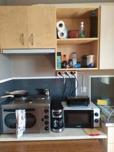 W apartamencie zapewniono taras, sypialnię (1), salon z telewizorem z płaskim ekranem, aneks kuchenny ze standardowym wyposażeniem, takim jak lodówka i piekarnik, a także kilka łazienek (2) z prysznicem. Obiekt oferuje widok na ogród. Ręczniki i pościel są dostępne w apartamencie Banana Leaves Flat.