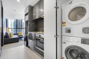The well-equipped kitchen has a stovetop, a refrigerator, a dishwasher and kitchenware. This apartment is air-conditioned and features a TV, a washing machine, a wardrobe and an electric kettle. V této ubytovací jednotce se nachází 1 postel.