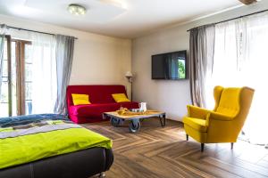 This double room offers a fireplace. Guests will find a stovetop, a refrigerator, kitchenware and a microwave in the well-fitted kitchen. The double room also provides guests with a barbecue. The spacious double room provides a private entrance, a tea and coffee maker, a terrace with garden views as well as a private bathroom featuring a walk-in shower. V této ubytovací jednotce je k dispozici 1 postel.