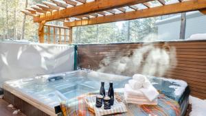 La maison de vacances l'établissement est équipée d'une télévision. La cuisine de l'établissement est équipée d'un réfrigérateur, d'un lave-vaisselle et d'un four. Il comprend également une baignoire, des articles de toilette gratuits et un sèche-cheveux à Base Camp by AvantStay Magical Cabin w Sauna Hot Tub Close to Snow Golf.