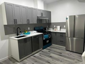 Presso Basement in Keswick Edmonton l'appartamento climatizzato presenta 1 camera da letto, TV a schermo piatto e cucina.