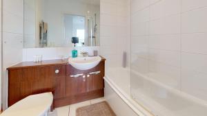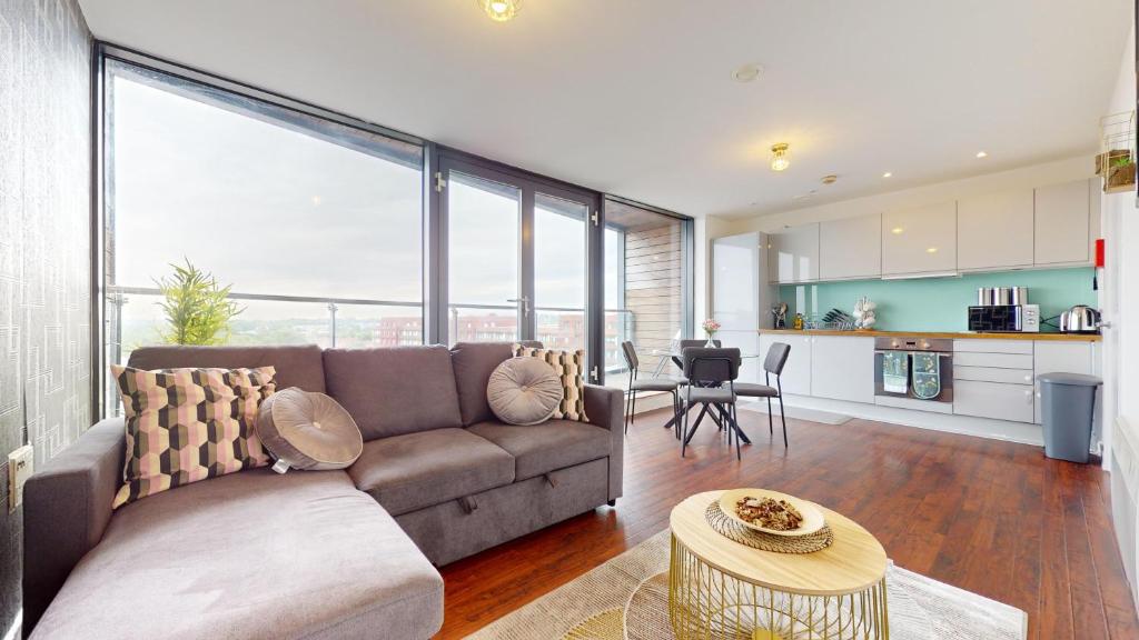 The well-fitted kitchen has a stovetop, a refrigerator, kitchenware and an oven. A seating area with a TV, a washing machine and a balcony are available in this spacious apartment. The unit has 5 beds.
