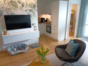 Pokoje: 1This apartment includes 1 living room, 2 separate bedrooms and 1 bathroom with a shower and a hairdryer. In the well-fitted kitchen, guests will find a stovetop, a refrigerator, a dishwasher and kitchenware. This apartment has a tea and coffee maker, flat-screen TV with streaming services, garden views, as well as chocolate for guests. V této ubytovací jednotce se nachází 2 postele.
