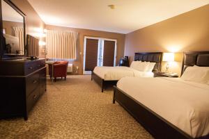 A microwave and fridge are included in this spacious room, along with cable TV.