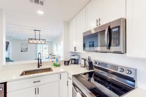Das klimatisierte Bay Acres Bungalow - A umfasst zwei separate Schlafzimmer, ein Wohnzimmer, eine voll ausgestattete Küche mit Kühlschrank und Geschirrspüler sowie zwei Badezimmer. In dieser Ferienwohnung werden Handtücher und Bettwäsche angeboten.