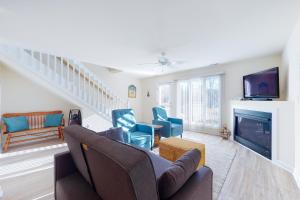 Guests will have a special experience as this holiday home provides a fireplace. Featuring a private entrance, this air-conditioned holiday home comprises 1 living room, 3 separate bedrooms and 2 bathrooms with a walk-in shower and a bath. The fully equipped kitchen features a stovetop, a refrigerator, a dishwasher and kitchenware. A seating area with a TV, a washing machine and a patio are featured in this spacious holiday home. The unit offers 4 beds and 1 futon.