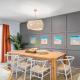 Dieses Ferienhaus mit Klimaanlage ist versehen mit 3 Schlafzimmern, Flachbild-TV und einer Küche mit einem Kühlschrank und einem Geschirrspüler In diesem Ferienhaus werden Handtücher und Bettwäsche angeboten.