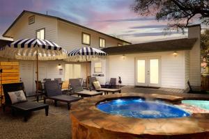 This holiday home boasts a private pool, hot tub and fireplace. Featuring a private entrance, this air-conditioned holiday home comprises 1 living room, 4 separate bedrooms and 2 bathrooms with a bath and a shower. Guests will find a stovetop, a refrigerator, a dishwasher and kitchenware in the kitchen. The holiday home also provides guests with a barbecue. The spacious holiday home provides a flat-screen TV with streaming services, a washing machine, a tea and coffee maker, a seating area as well as garden views. The unit provides 6 beds.