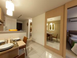 This air-conditioned apartment provides a dining area, a full kitchenette and a modern bathroom. Amenities include a TV, refrigerator, a cooktop and microwave.