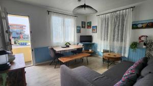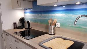 Beach Front Apartment Eljocri está en Capbreton, a solo 7 min a pie de Plage du Prévent, y dispone de alojamiento con vistas al mar, wifi gratis y parking privado gratis. El alojamiento ofrece vistas a la montaña y está a 35 km de Estación de Biarritz y a 39 km de Estación de tren de Dax.