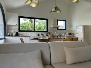 Tato vila má 3 ložnice, 1 koupelnu, ložní prádlo, ručníky, TV s plochou obrazovkou se satelitními programy, jídelní část a kuchyň s kompletním vybavením. Ubytování Beach House Paupiette - 150m plage sud nabízí také terasu s výhledem do zahrady. Koupelna je vybavená sprchou.