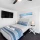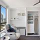 Apartmán Beach Studio Ocean Views Level 17 Pool Gym Sauna má 1 ložnici, TV s plochou obrazovkou a klimatizaci.