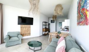 Pokoje: 1Boasting a private entrance, this spacious apartment also features 2 living rooms, 2 separate bedrooms and 2 bathrooms with a shower. The fully equipped kitchen has a stovetop, a refrigerator, a dishwasher and kitchenware. Featuring a terrace with sea views, this apartment also features a washing machine and a flat-screen TV. The unit has 4 beds.