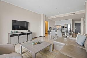 Boasting a private entrance, this spacious apartment also features 1 living room, 2 separate bedrooms and 2 bathrooms with a hairdryer. Guests will find a stovetop, a refrigerator, a dishwasher and kitchenware in the fully equipped kitchen. The apartment also comes with a barbecue. The air-conditioned apartment features a TV with cable channels, a washing machine, a coffee machine, tumble dryer as well as sea views. The unit has 3 beds.